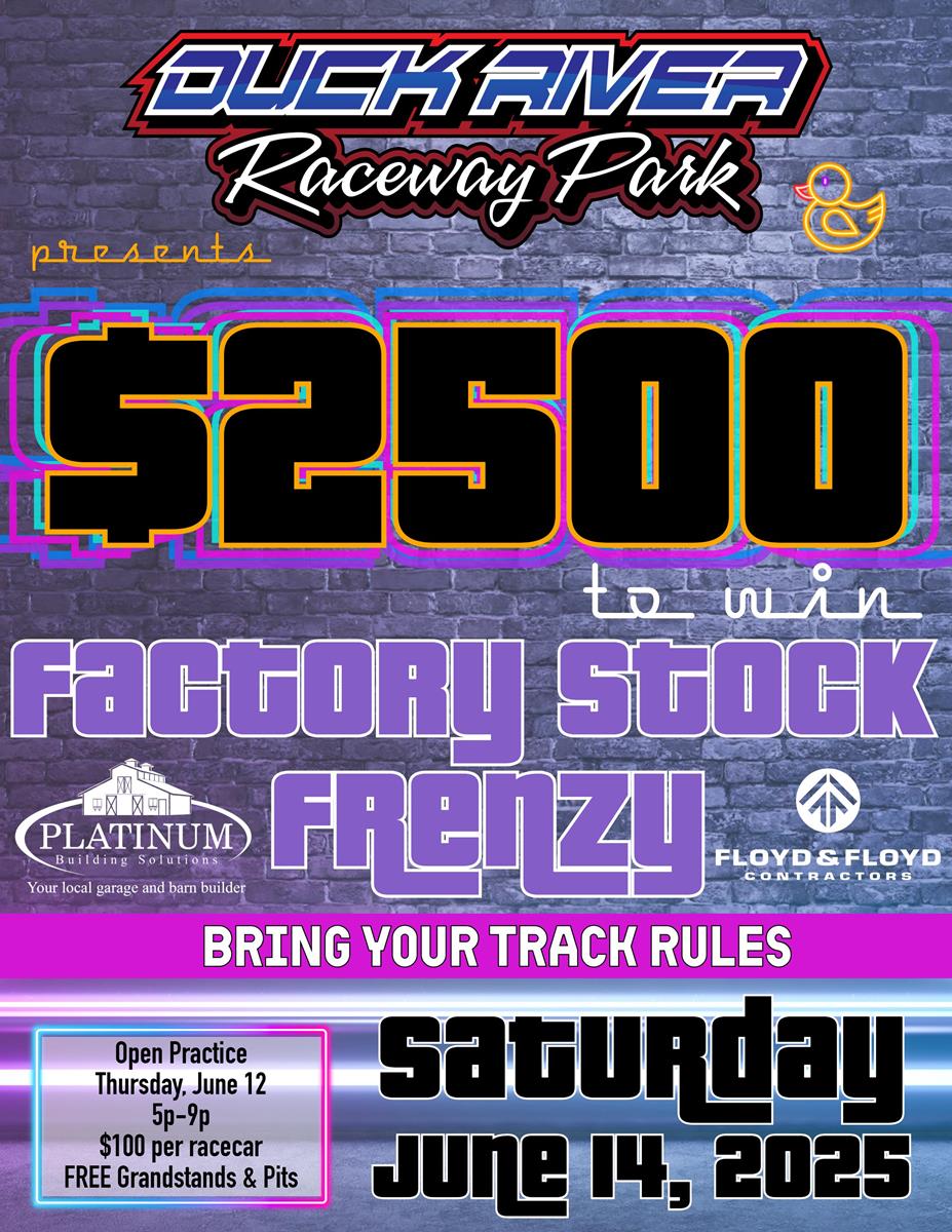 Duck River Raceway Park is turning up the heat on Saturday, June 14 with $2,500 to WIN for Factory Stock — this is YOUR night to shine!